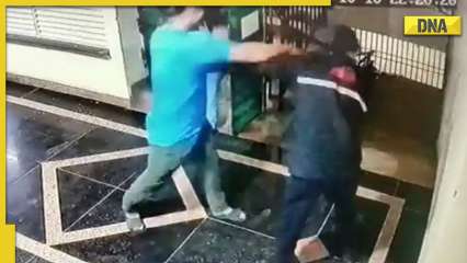 वायरल वीडियो: गाजियाबाद सोसायटी निवासी ने सुरक्षा गार्ड को पीटा | फोटो: ट्विटर/@निखिलच_