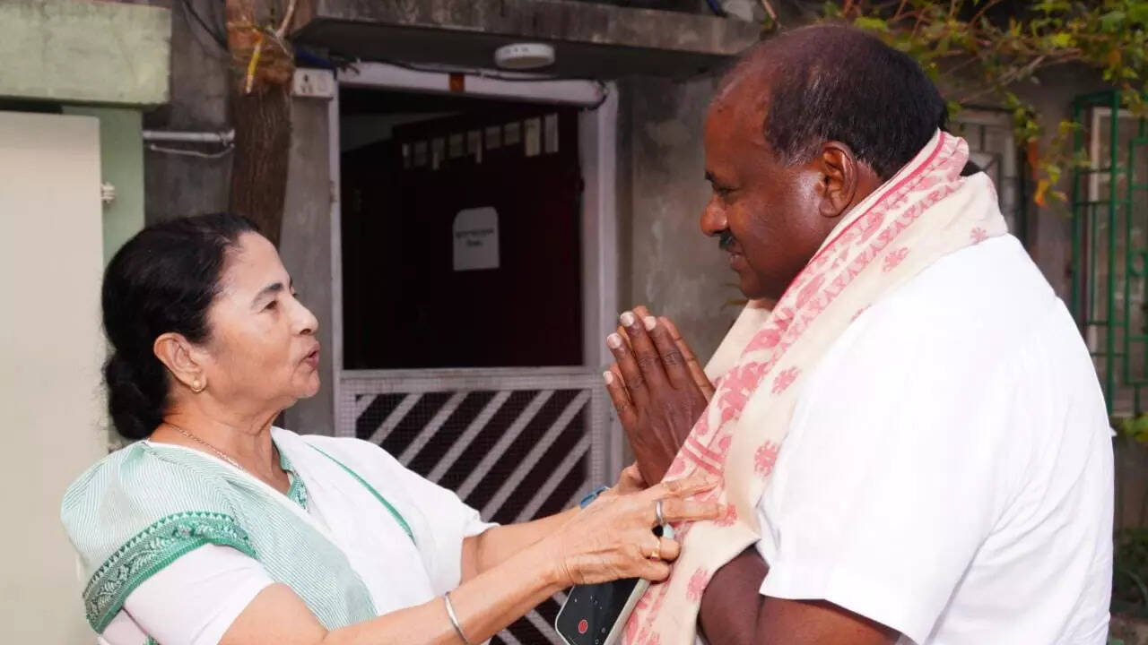 कर्नाटक के पूर्व मुख्यमंत्री दिन में पहले शहर पहुंचे और शाम करीब 4.50 बजे बनर्जी के आवास पर पहुंचे।