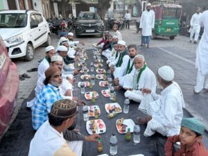 कासगंज: जनपद कासगंज के कस्बा भरगैन में AIMIM की भरगैन यूनिट से रोजा अफ्तार पार्टी का आयोजन किया गया।आयोजन में सैकड़ों रोजेदारों ने एक साथ बैठकर अपना रोजा खोला। इफ्तार में खजूर, फल, फ्रूट और पकवानों सहित खाद्य सामग्री परोसी गईं, जिसका रोजेदारों ने लुत्फ उठाया।